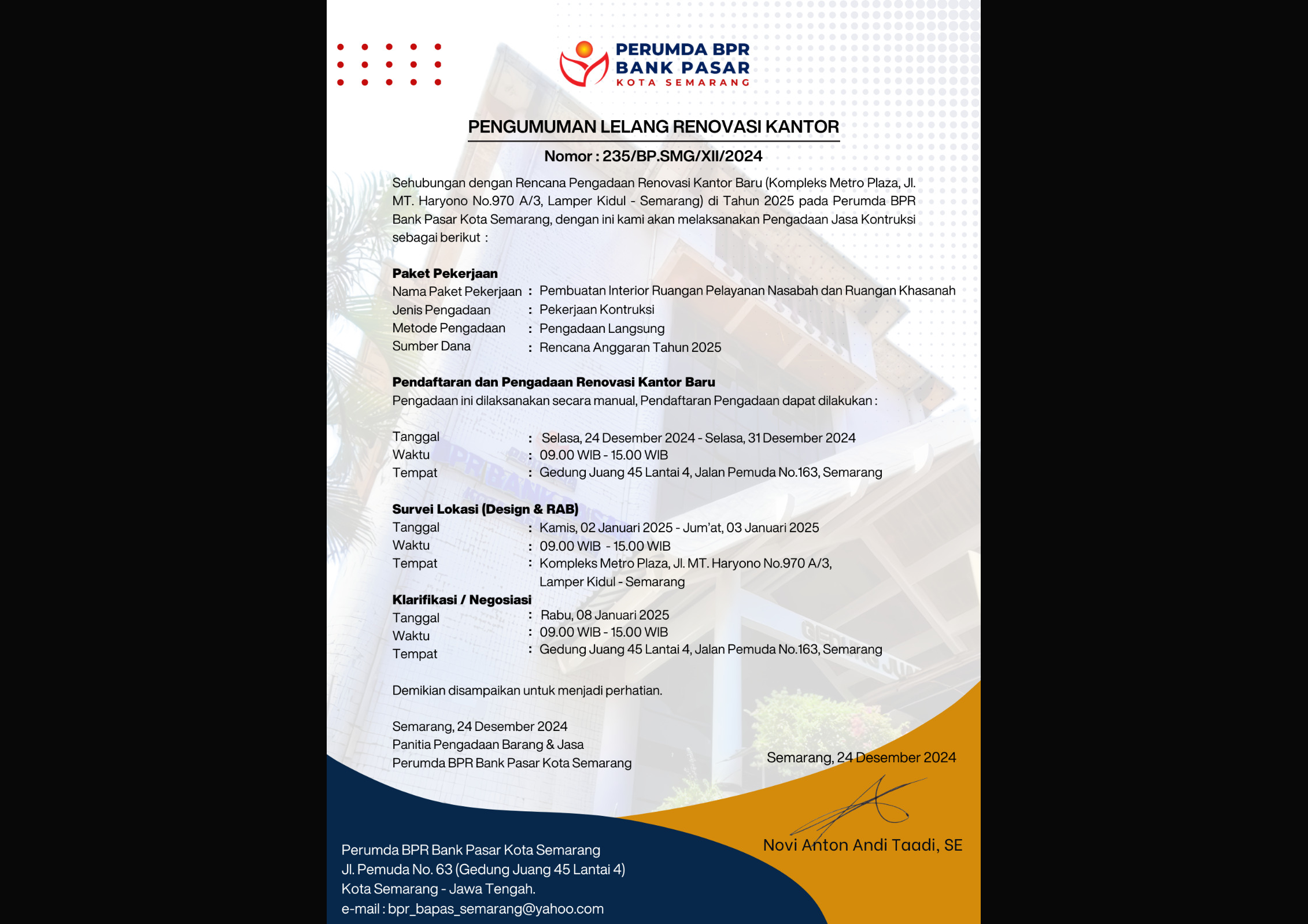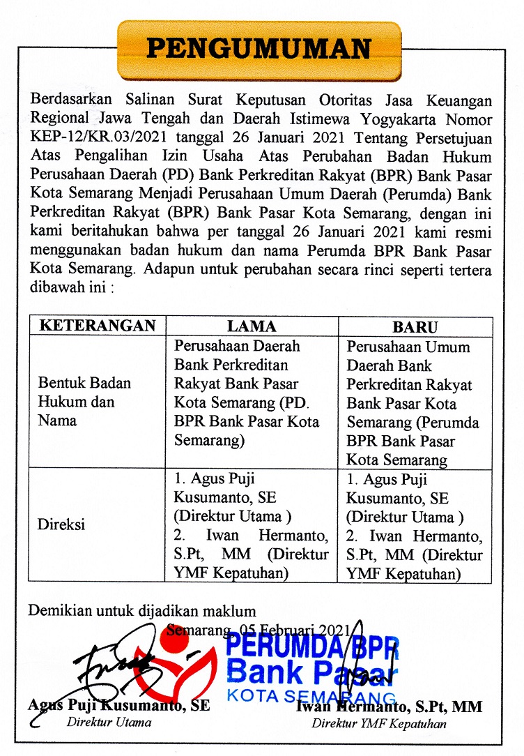 Deposito berjangka di Perumda Bank Pasar Kota Semarang - Proses Cepat, Aman, dan Praktis. Sangat Cocok untuk berinvestasi yang aman dan menguntungkan.
